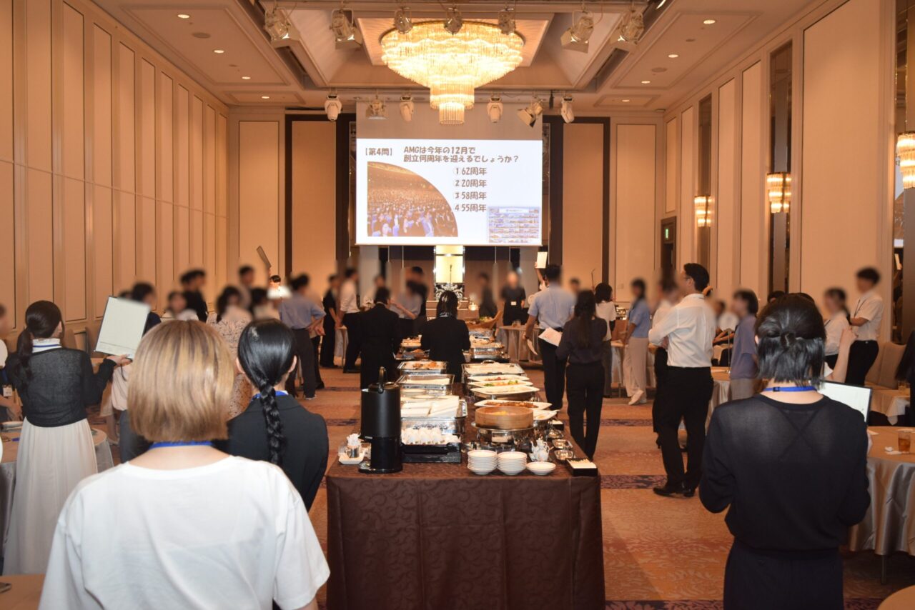 懇親会ではホテルの豪華な料理を食べつつ席替えやクイズ大会を行い大盛り上がりでした。